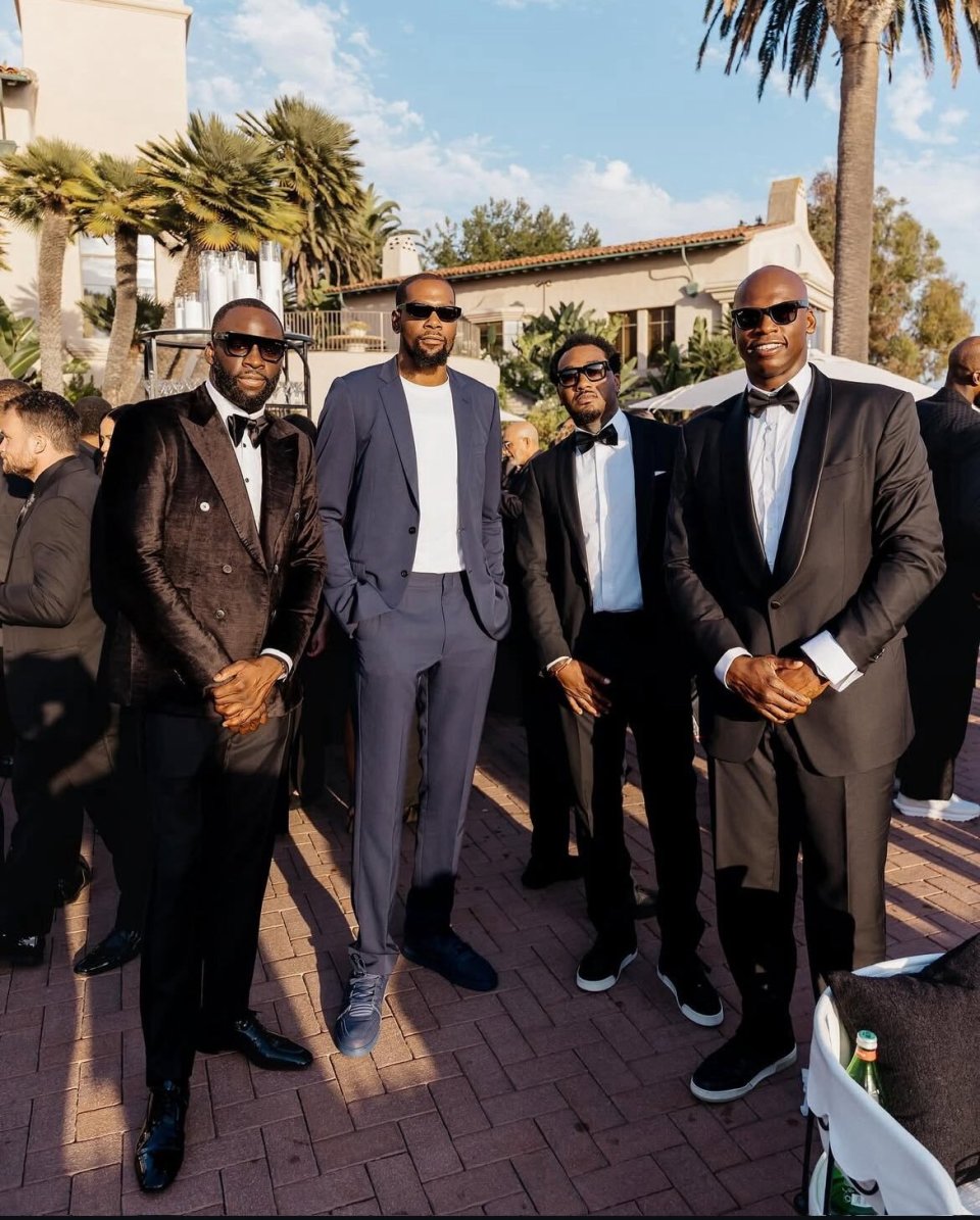 杜兰特出席婚礼更多画面:双色插兜合影追梦 脏辫塔图姆发声祝贺比尔